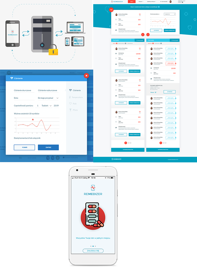 Remedizer is a universal system of telecare (telemonitoring) of chronically ill patients together with an extensive pharmacotherapy module that allows for ongoing observation of one's own and their relatives' state of health as well as communication with doctors and coordinators.